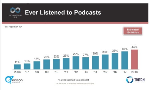 Since its release in 2014, podcasting has gotten BIG: the percentage of people who know what a podcast is has gone up, the percentage of people who listen has gone up, the number of podcasts created has gone up – it is a booming industry.